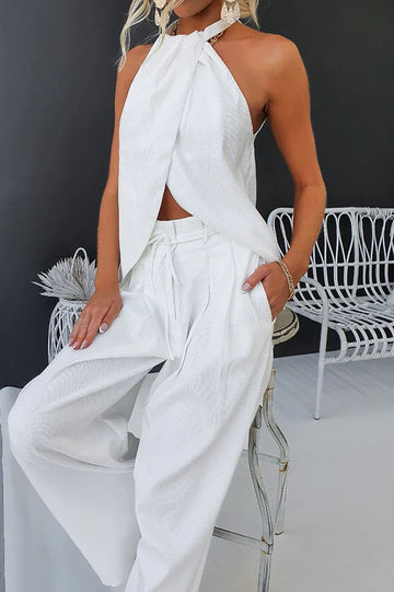ZEPHIRA – Ensemble Haut Fendu & Pantalon Large à Poches Nouées en Lin